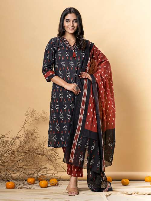 • Find gorgeous sets of ethnic wears in trending designs in black colors suitable for casual wear of occasions.