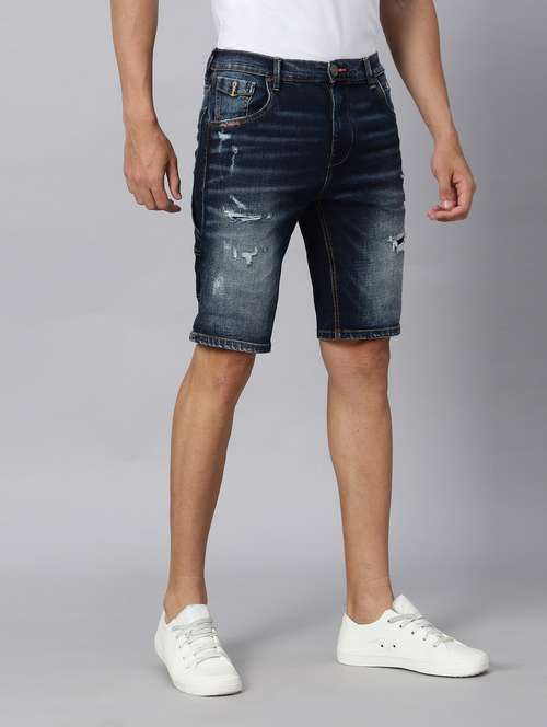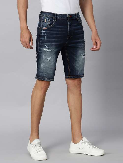- » dark blue distressed three fourth shorts