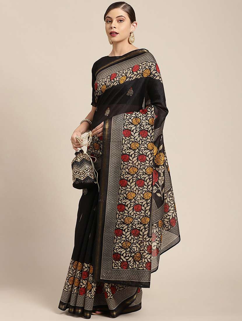 - » women's floral black colored saree