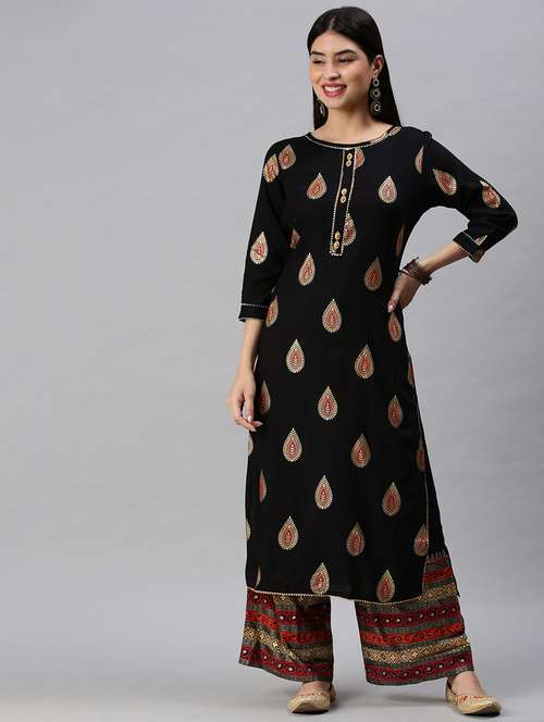 - Find gorgeous sets of ethnic wears in trending designs in black colors suitable for festive wear of occasions.
