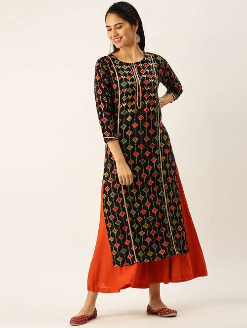 - Find gorgeous sets of ethnic wears in trending designs in black colors suitable for casual wear of occasions.