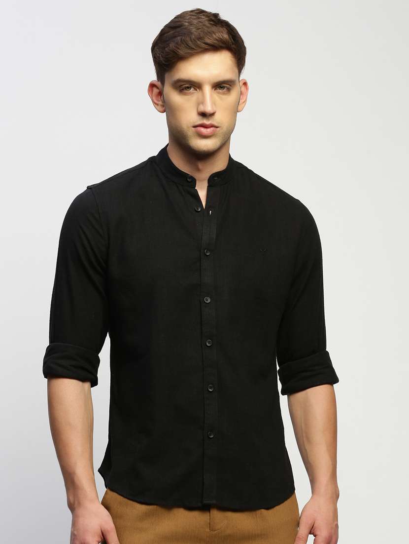 black cotton blend casual shirt