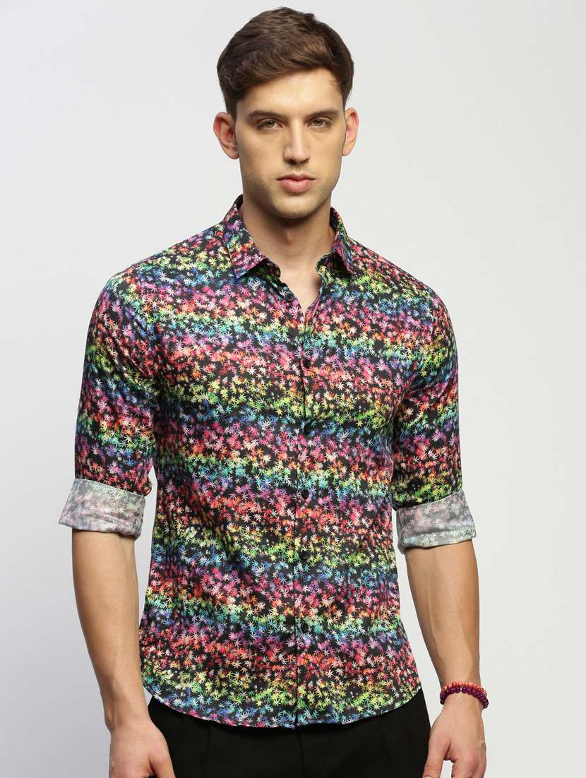- » men multi colored printed slim fit cotton blend casual shirt