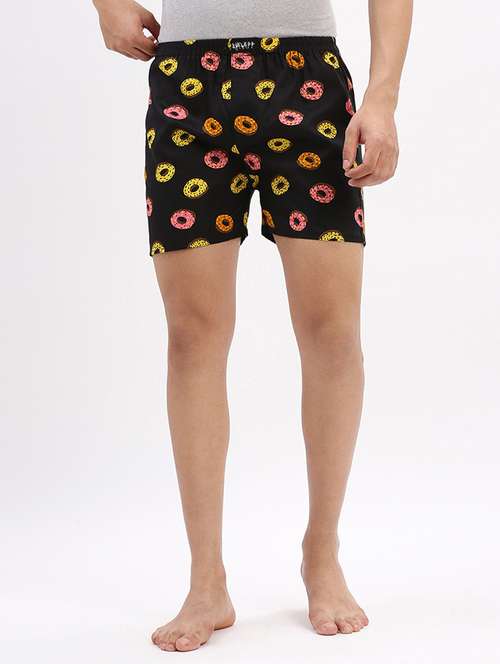 SHOWOFF Men's Printed Cotton Black Boxers