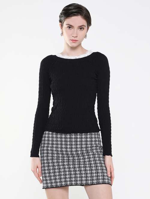 - » women black solid regular top