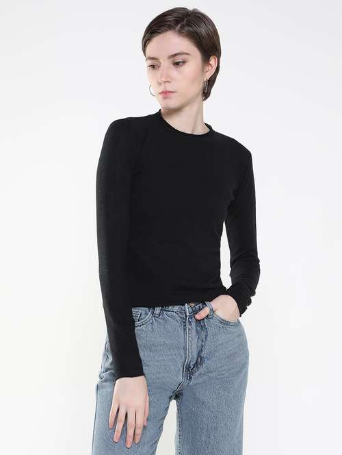- » women black solids long sleeves top