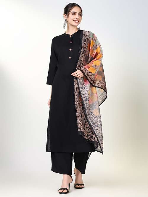 - Find gorgeous sets of ethnic wears in trending designs in black colors suitable for casual wear of occasions.