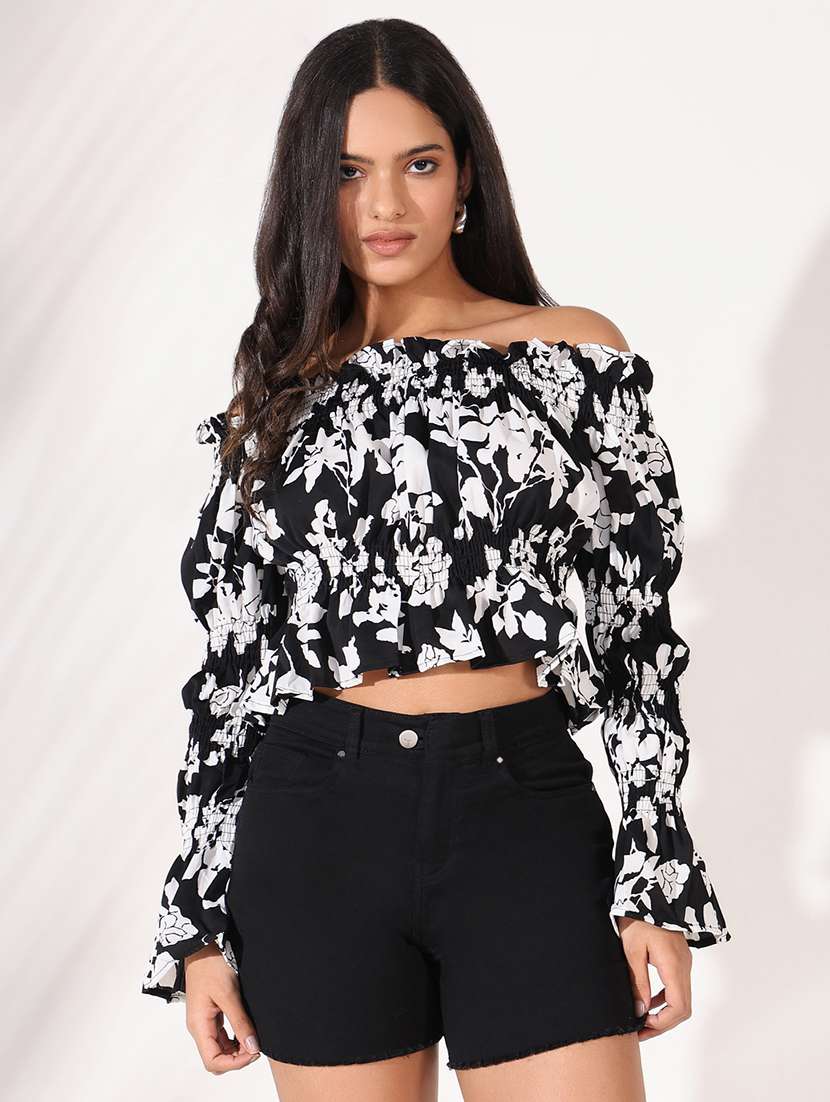 women floral print off shoulder regular top