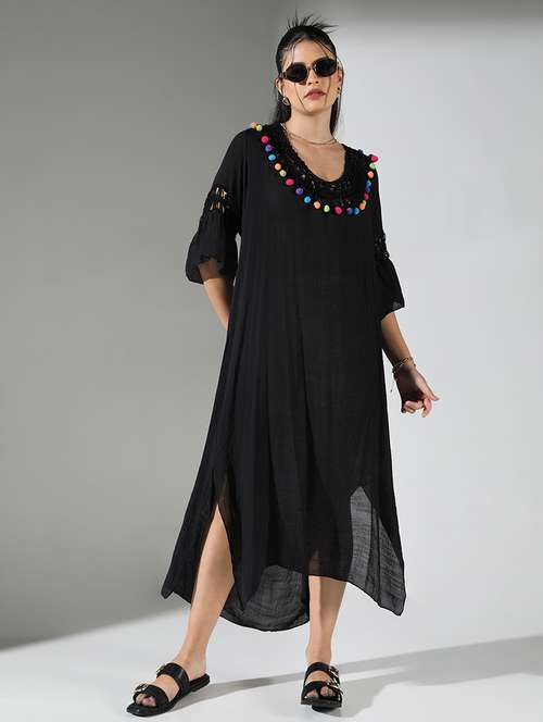 women solid lace detailed asymmetric dress - 21682048 - Very Small Image - 1