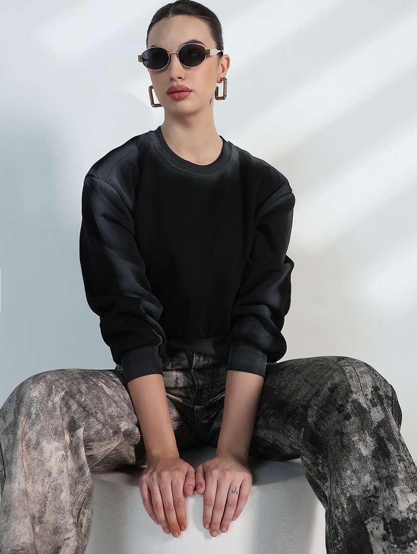 - » women solid long sleeve cropped sweatshirt