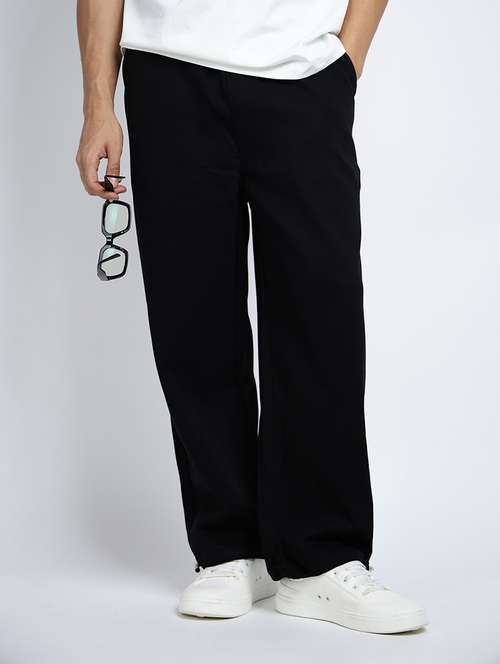 - » men solid mid rise straight fit parachute trouser