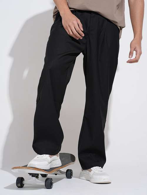 - » men solid low rise straight fit trouser