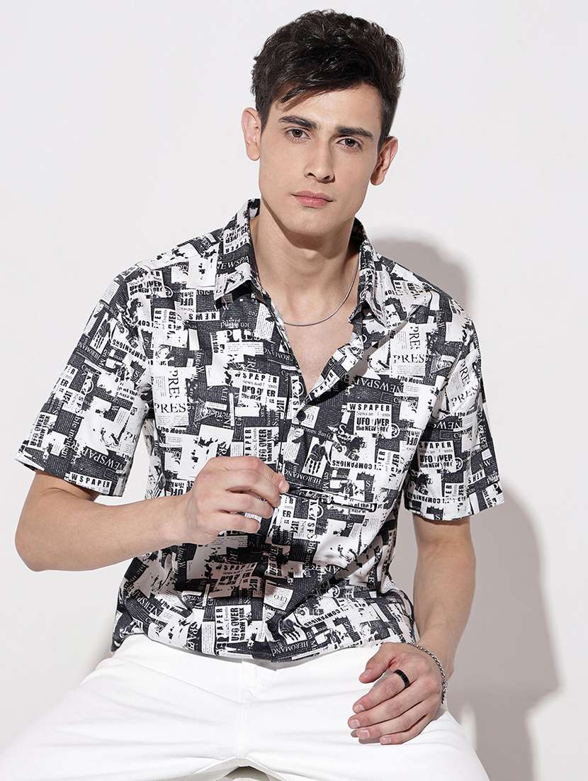 men printed short sleeve regular fit casual shirt