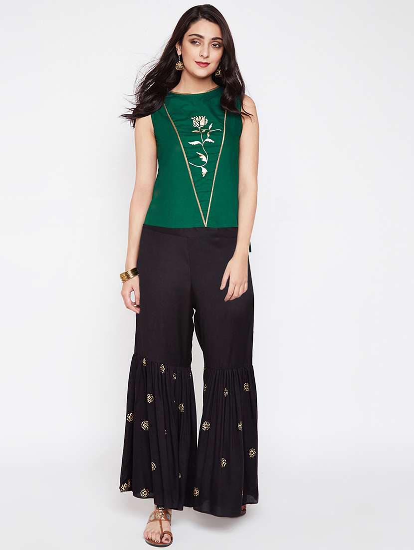 - » foil printed top with sharara set