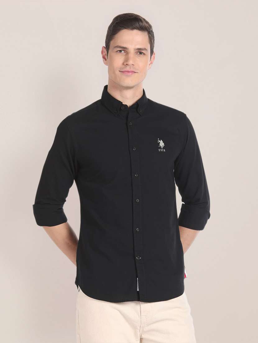 - » black cotton blend casual shirt