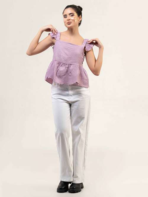 This cotton peplum top is a chic and comfortable pick for your wardrobe. Crafted in breathable cotton, it features elegant frill/puff-style sleeves that bring a delicate, feminine touch, and a peplum hem that cinches at the waist before flaring out to create flattering movement. The square neckline gives it structured elegance while keeping things modern. Whether you pair it with tailored pants for work-smart style or your favourite jeans for a weekend look, it combines everyday ease and elevated detail in one go.