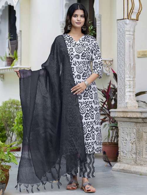 - Find gorgeous sets of ethnic wears in trending designs in off white colors suitable for casual wear of occasions.