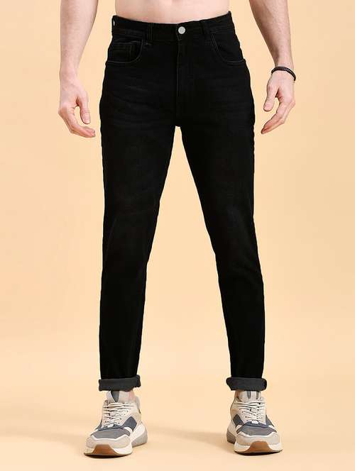 men black mid rise plain jeans