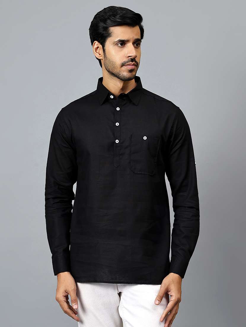 - » men black cotton blend short kurta