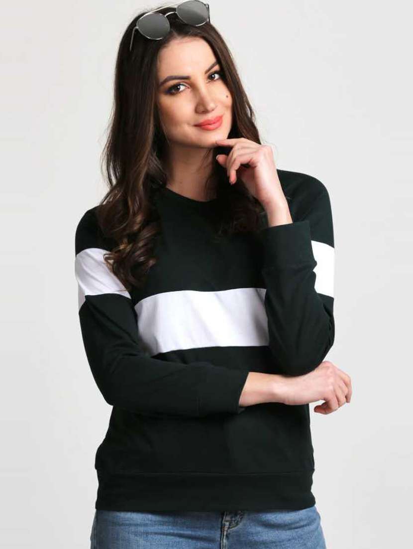 Gespo Black & White Colorblocked Round Neck Full Sleeve T-Shirt