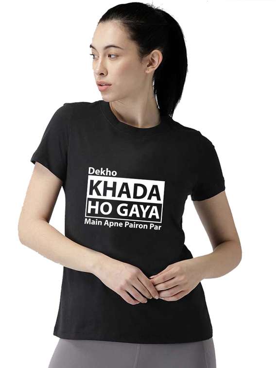 - » women's chest print round neck t-shirt
