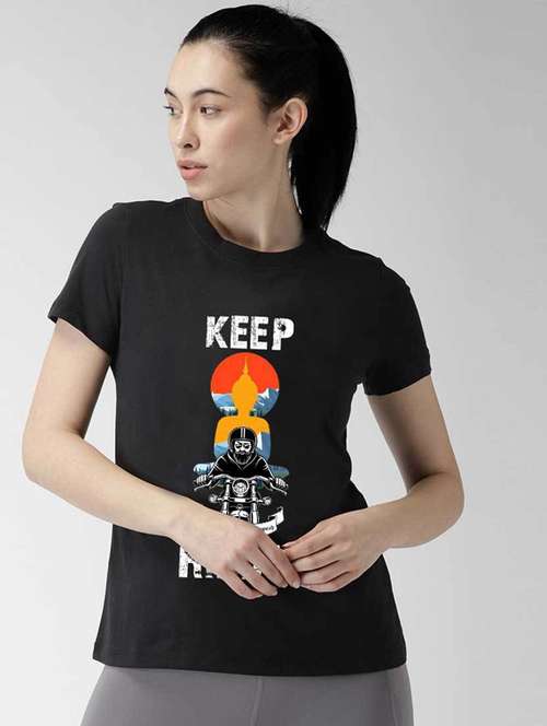 - » women's front print round neck t-shirt
