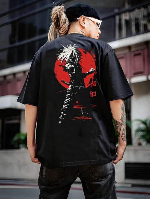 - » men front & back print round neck oversized t-shirt
