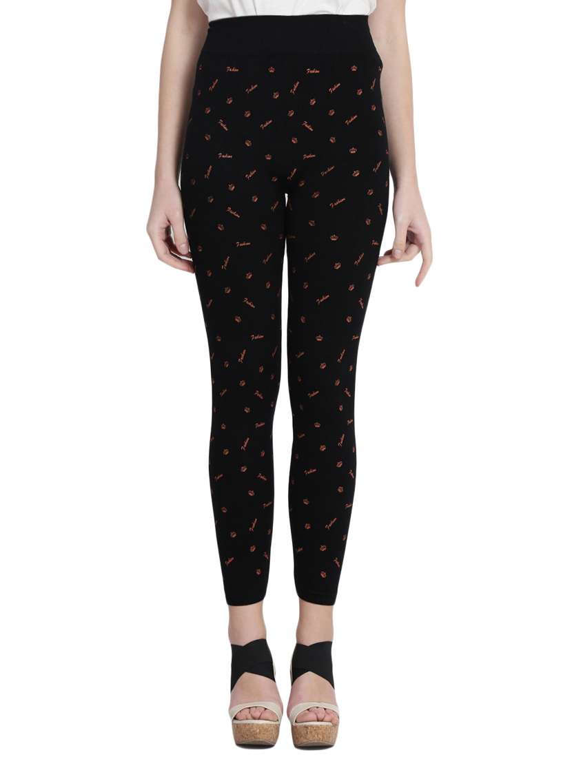 black printed cotton jegging