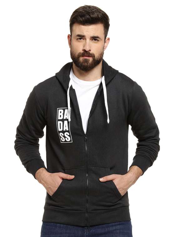 - » black chest printed casual jacket
