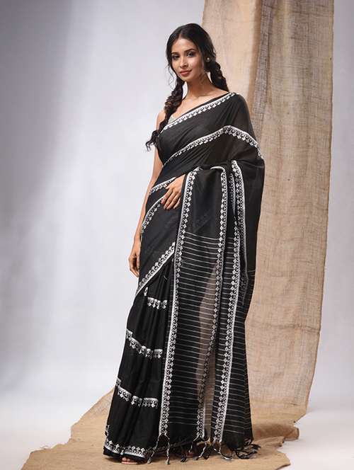- » women's stripes black colored saree with blouse