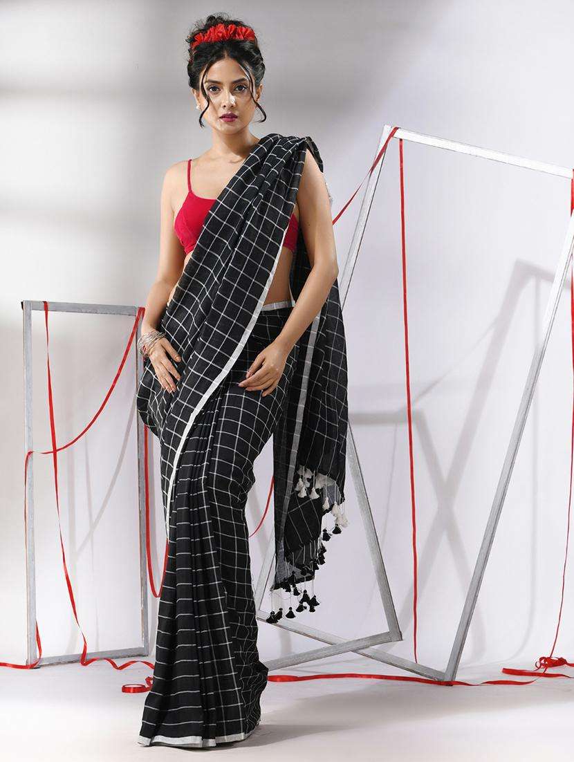 women checkered handloom saree with blouse