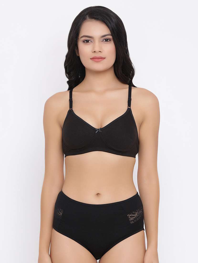 Product Type: T-Shirt Bra, Full Coverage Bra, Full Figure Bra & Hipster Panty Set ; Fabric Type: Cotton ; Pattern Type: Solid ; Padding: Non Padded ; Wire Support: Wirefree ; Waist Rise: High Waist ; Strap Type: Adjustible Regular Strap