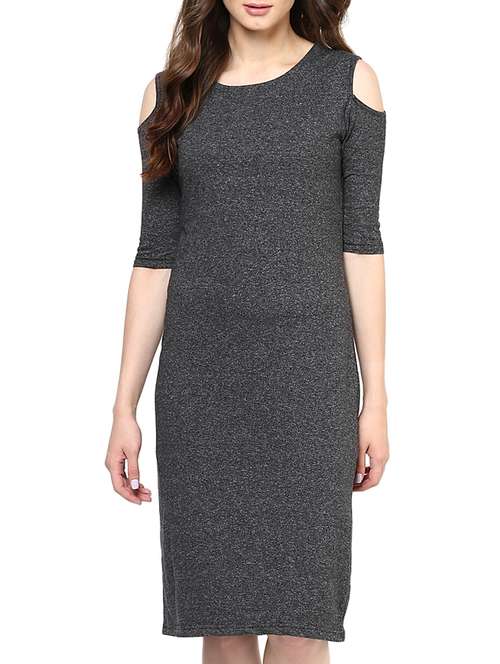 cold shoulder solid sheath dress