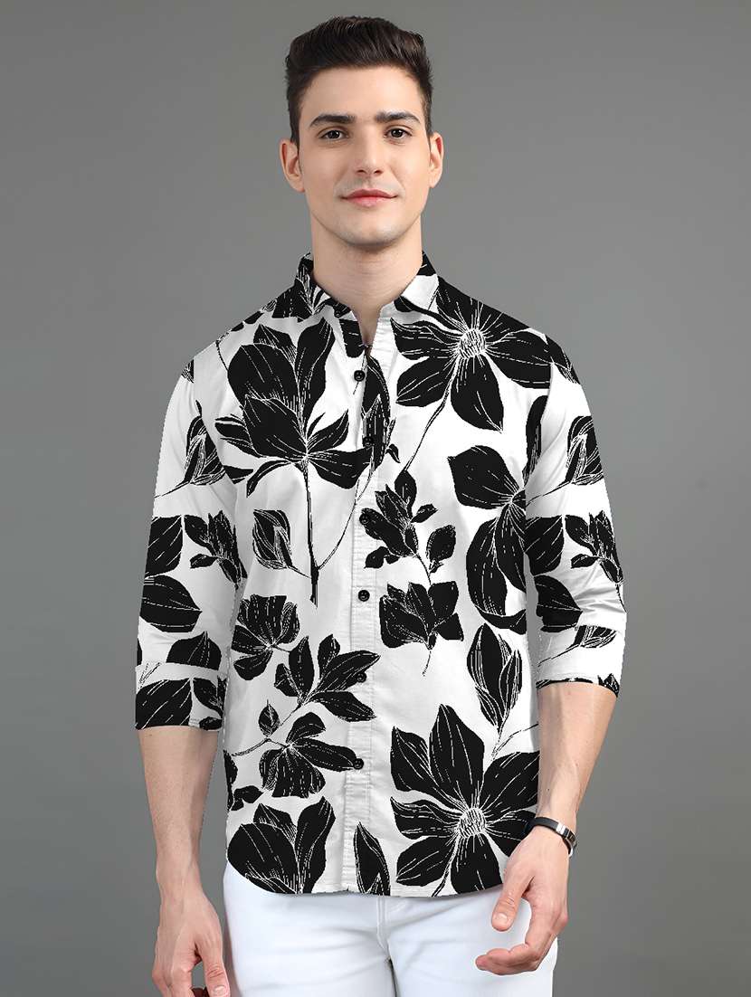 - » men floral printed long sleeves casual shirt