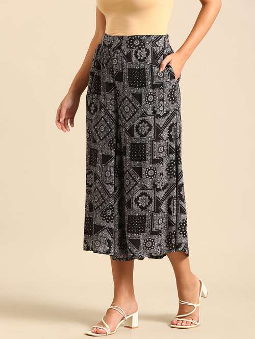 De Moza Women Culottes Woven Bottom All Over Print Cotton Black