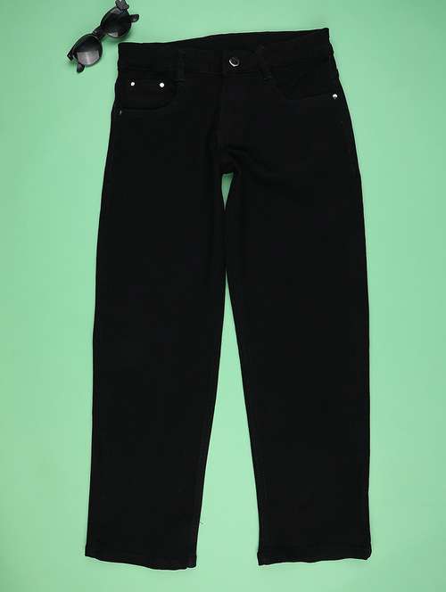 girls solid md rise straight jeans