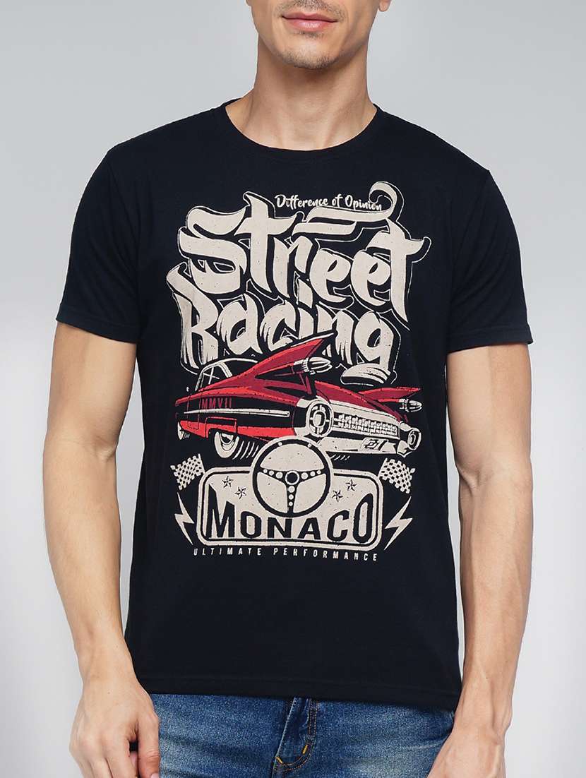 - » black cotton front print t-shirt