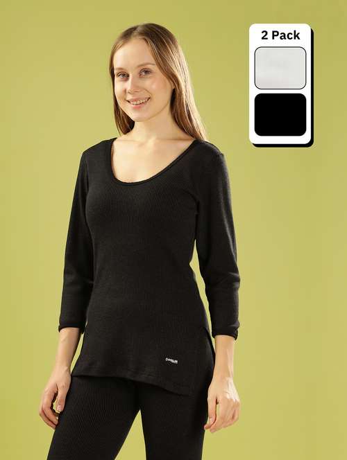 - Choose among the black color range of comfortable style of three-quarter sleeve thermals and inner wear which can be worn under any kind of outfit.