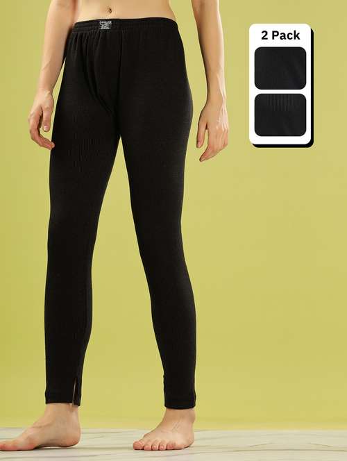 women pack of 2 solid mid rise thermal bottom