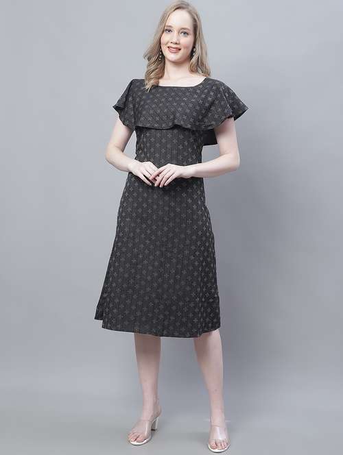 - Dress up in a soothing pattern and don this dress made of cotton material.