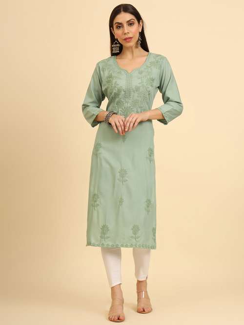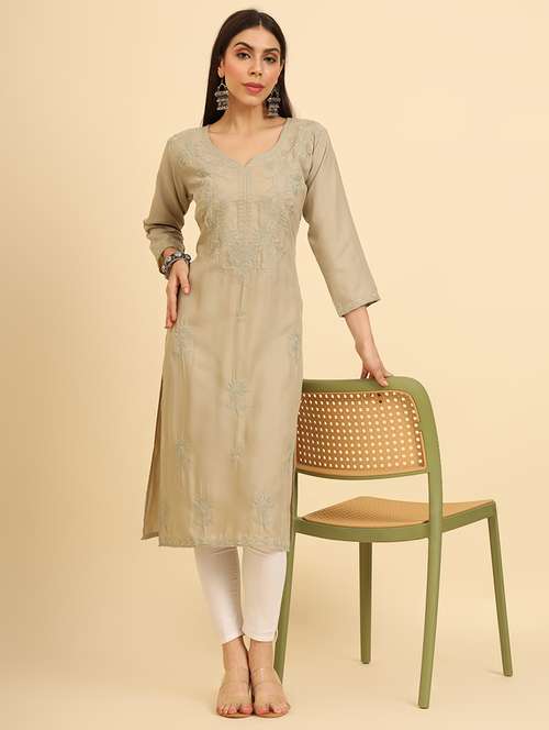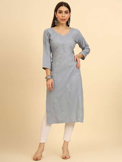- Grab this beautiful kurta made up of cotton fabric featuring v neck neck designs.