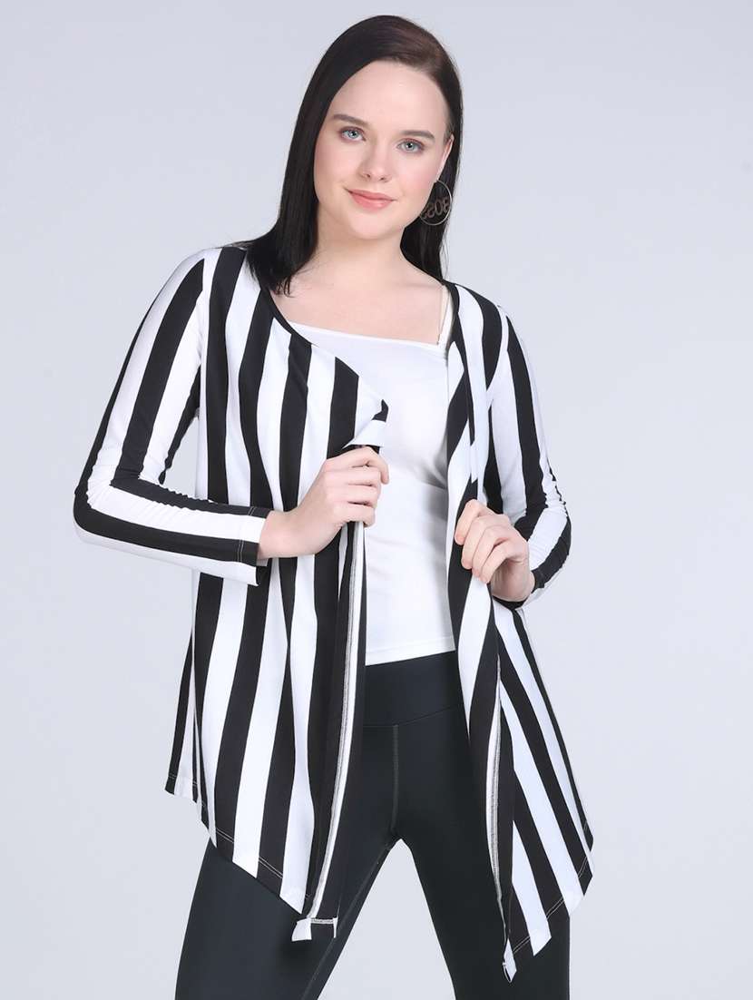 women striped long sleeve asymmetric shrug