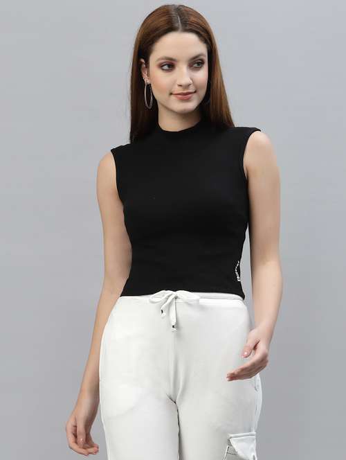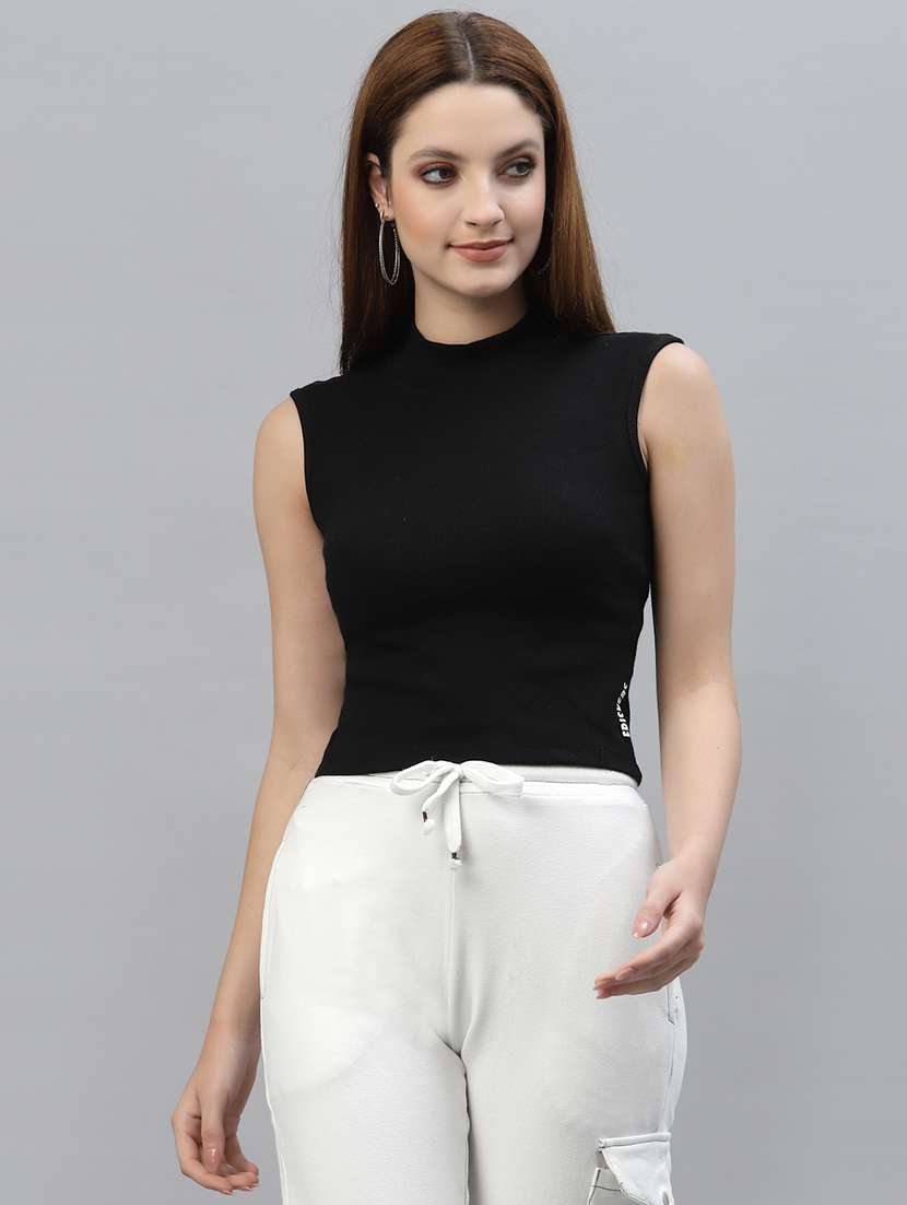- » women solid sleeveless moc neck top