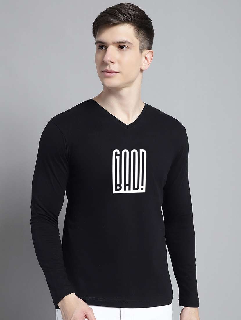 - » men black cotton chest print t-shirt