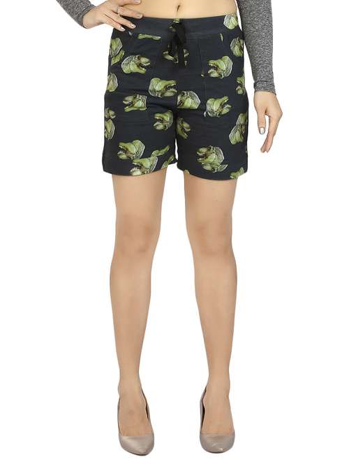 - » black printed cotton shorts