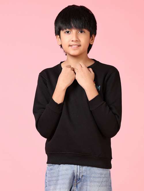 - Choose among the black color range of comfortable style of sweatshirts suitable for a sea of occasions that young boys will love to wear.