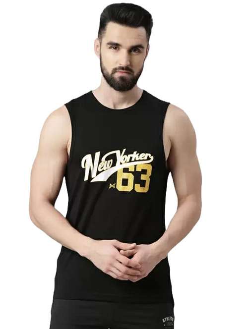 men black printed sleeveless vest