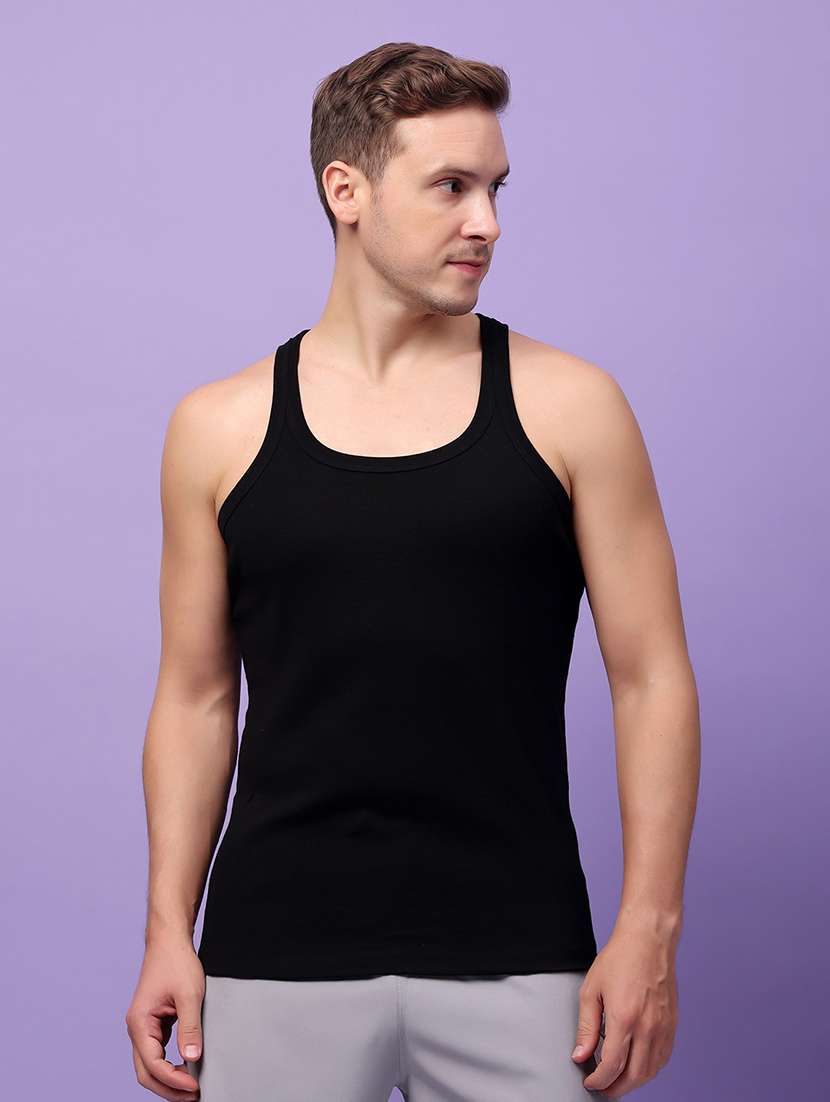 men black solid vest
