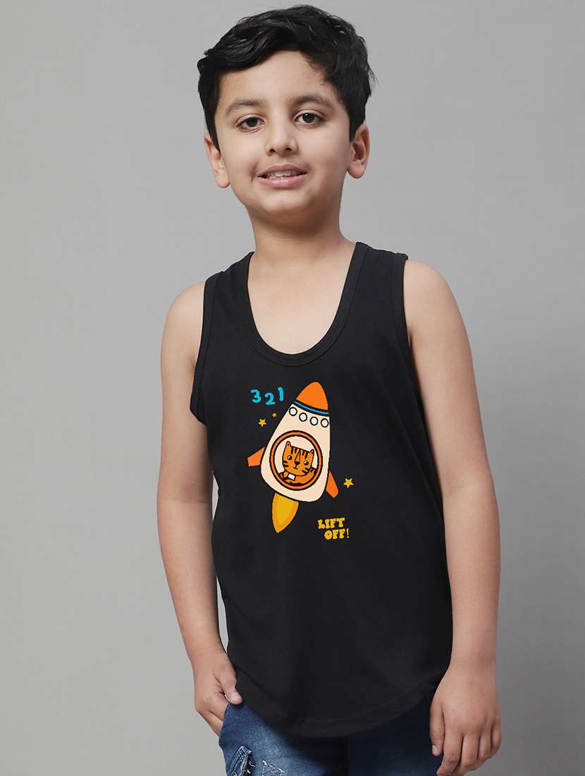 boys scoop neck printed vest