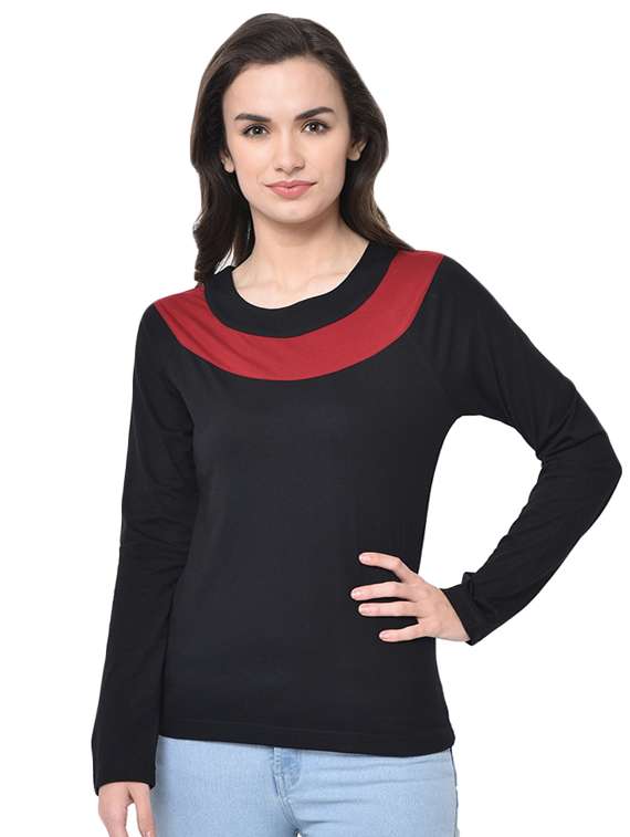 - » women's color block round neck t-shirt